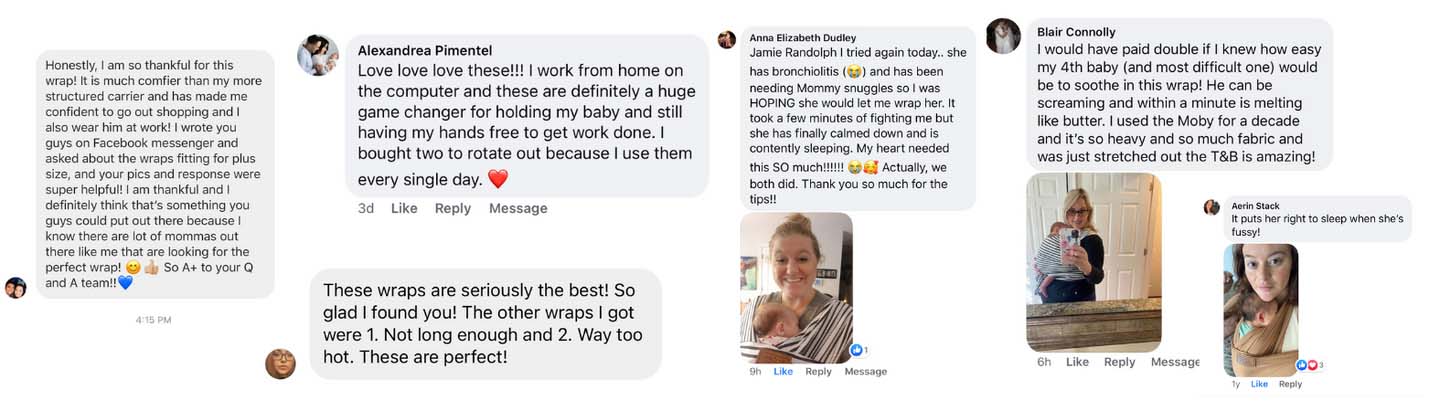 Buying two is a great way to share your baby wrap with dad, leave one in the car, and even have a spare when one is being laundered.